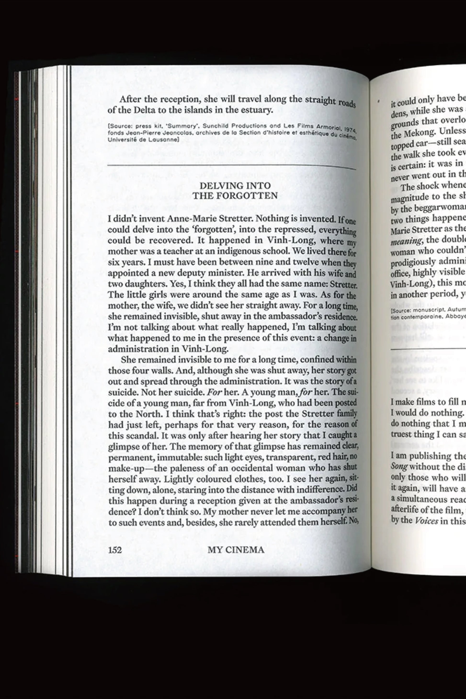 フランス人映画監督 Marguerite Durasが手掛けた1966-1985年の9本の作品を 年代順にまとめた回想集。当時のプレスリリースから出演者とのメモでのやり取りや資金提供者に懇願した際の手紙など表には出ない内容が収められています。また短編エッセイとインタビューも取り上げられています。映画を壊すという映画制作の矛盾の表現が、神秘的なグノーむ文学に変わると言います。40年に渡るキャリアの中でフランス共産党にヒッピー、ユダヤ人、革命愛、狂気や自由などのテーマに触れ、常に現代の一瞬一瞬と世界を繋げています。是非My CinemaでMarguerite Durasの思想に触れてみてください。