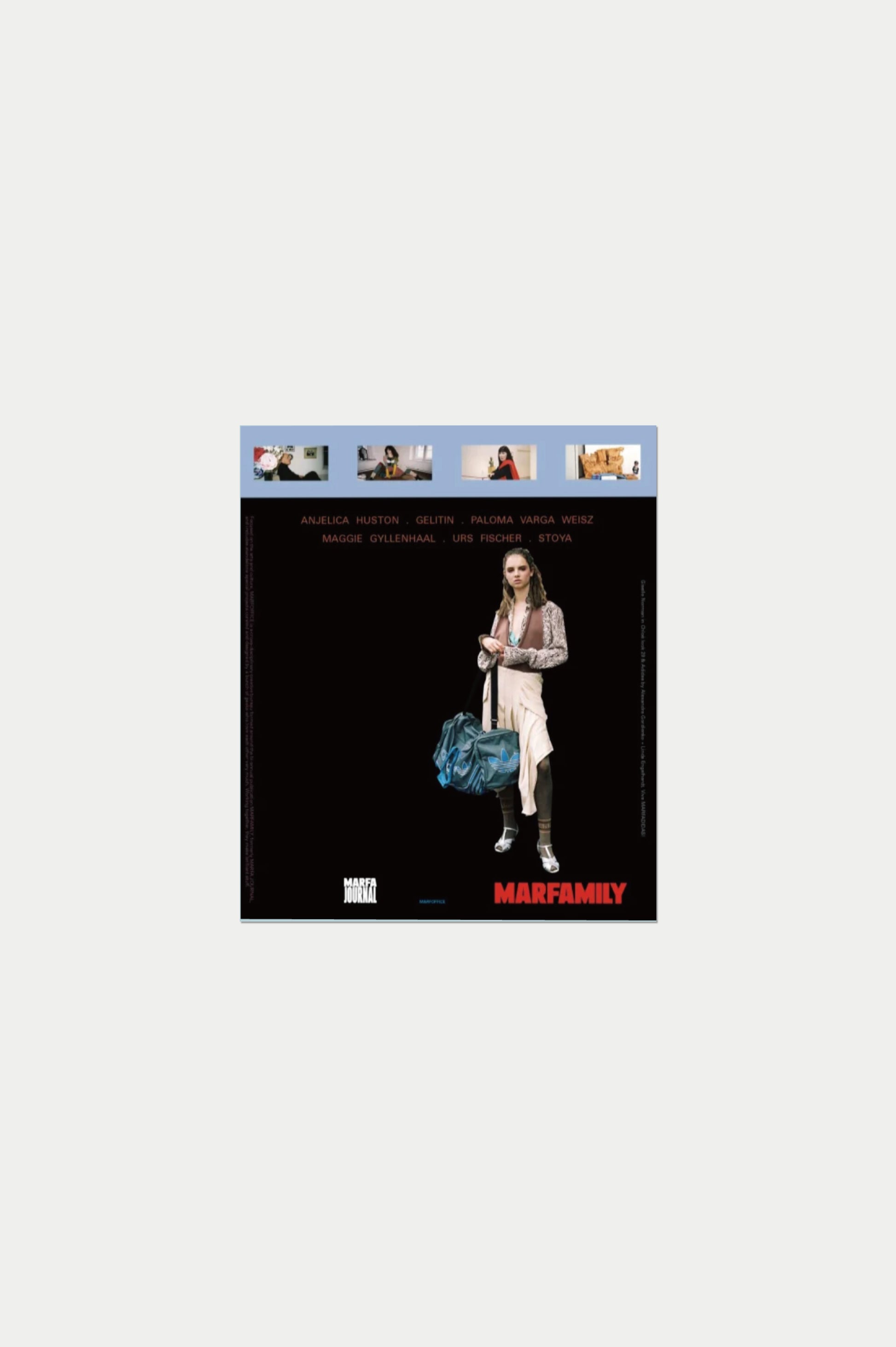 MARFAMILY 第3号は、既存のマガジンの枠を大きく超える、挑発的かつ祝祭的な一冊。MARFA JOURNAL とは異なる編集思想のもと、他のどんな雑誌とも比較できない独自の存在として制作されています。アンジェリカ・ヒューストン、Gelitin、パロマ・ヴァルガ・ヴァイス、マギー・ギレンホール、ウルス・フィッシャー、ストーヤらが登場。世界を揺さぶり、新しい平和と愛の時代を呼び込むかのような、刺激的でエネルギッシュなコンテンツが収録されています。さらに、すべての号にMARFABULOUS A2ポスター を封入。読むだけでなく、広げて飾ることで完成する、MARFAMILY ならではの体験型マガジンです。