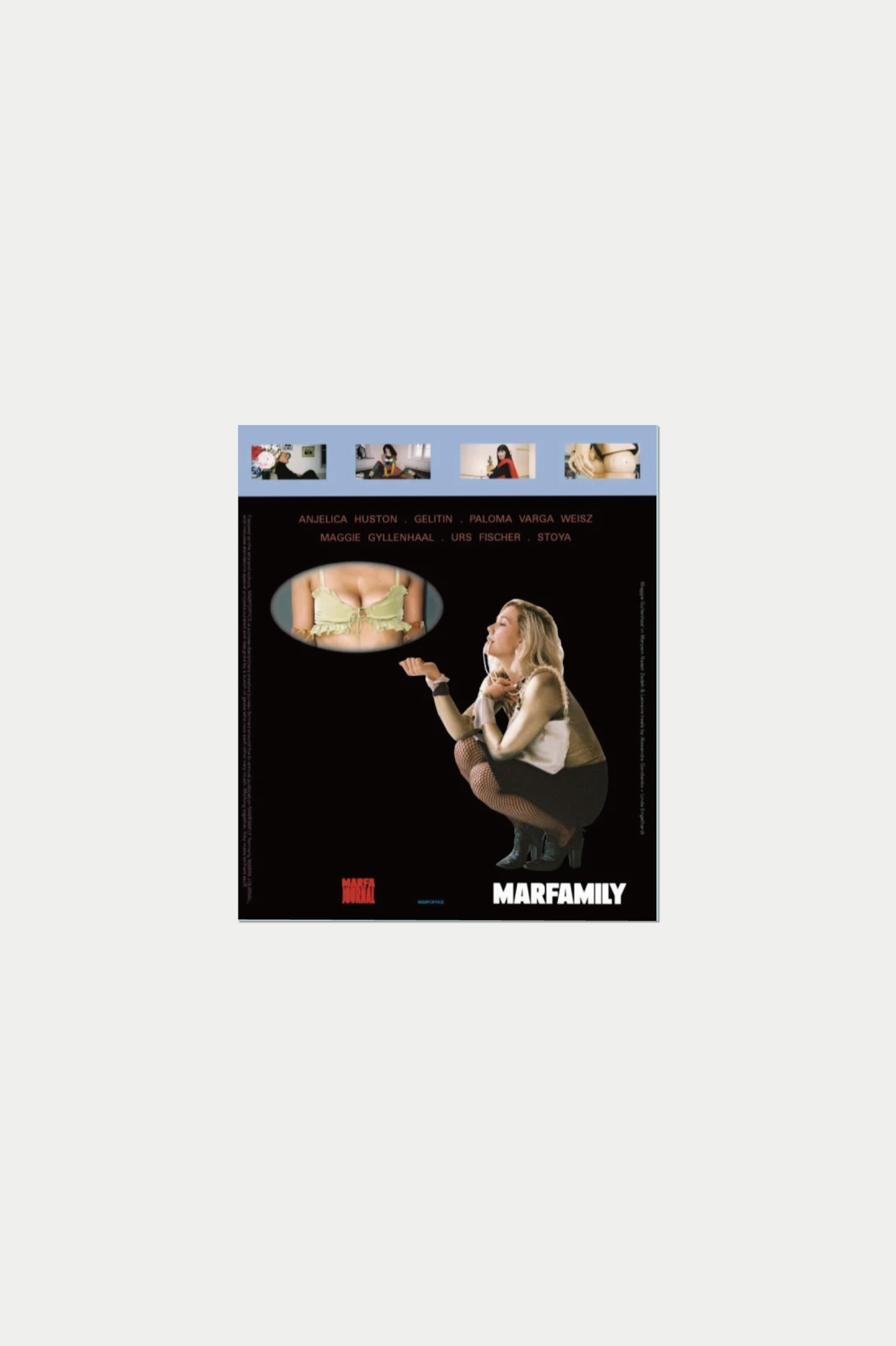 MARFAMILY 第3号は、既存のマガジンの枠を大きく超える、挑発的かつ祝祭的な一冊。MARFA JOURNAL とは異なる編集思想のもと、他のどんな雑誌とも比較できない独自の存在として制作されています。アンジェリカ・ヒューストン、Gelitin、パロマ・ヴァルガ・ヴァイス、マギー・ギレンホール、ウルス・フィッシャー、ストーヤらが登場。世界を揺さぶり、新しい平和と愛の時代を呼び込むかのような、刺激的でエネルギッシュなコンテンツが収録されています。さらに、すべての号にMARFABULOUS A2ポスター を封入。読むだけでなく、広げて飾ることで完成する、MARFAMILY ならではの体験型マガジンです。
