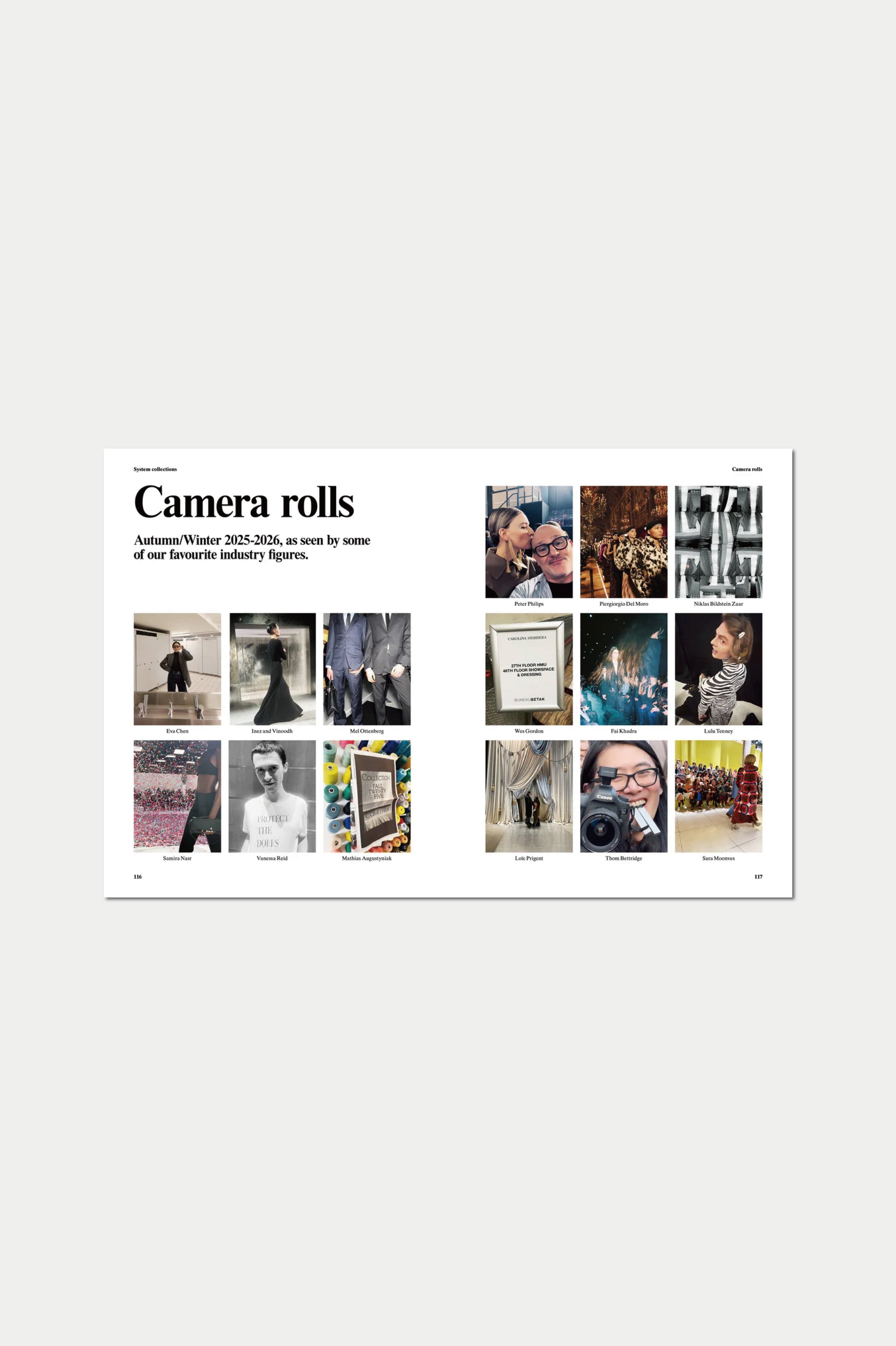 System Collections創刊号では25-26秋冬コレクション特集、写真家マーク・キーンとスタイリストのヴァネッサ・リードによる、ピエルジョルジオ・デル・モーロがキャスティングを担当した独占の82ページにわたるポートフォリオを収録しています。シーズンを代表する32名のモデルが登場し、80のブランドを網羅。さらに、業界を代表する批評家・コメンテーター・クリエイター24名がシーズンについて語り合い、ランウェイの内外で今最も重要なファッションのテーマを議論・分析します。